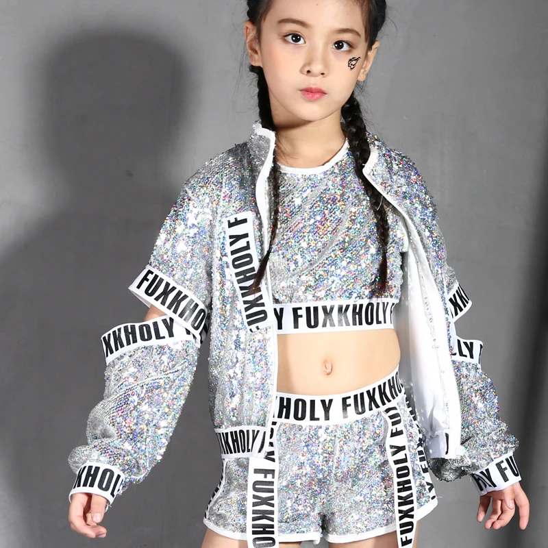 Best Quality Songyuexia Sparkly children's Jazz Modern Dance Costumes Girls Jazz Sequins alphabet band hip hop S